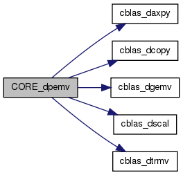 | int | CORE_dpemv (int trans, int storev, int M, int N, int L, double ALPHA, double *A, int LDA, double *X, int INCX, double BETA, double *Y, int INCY, double *WORK) |