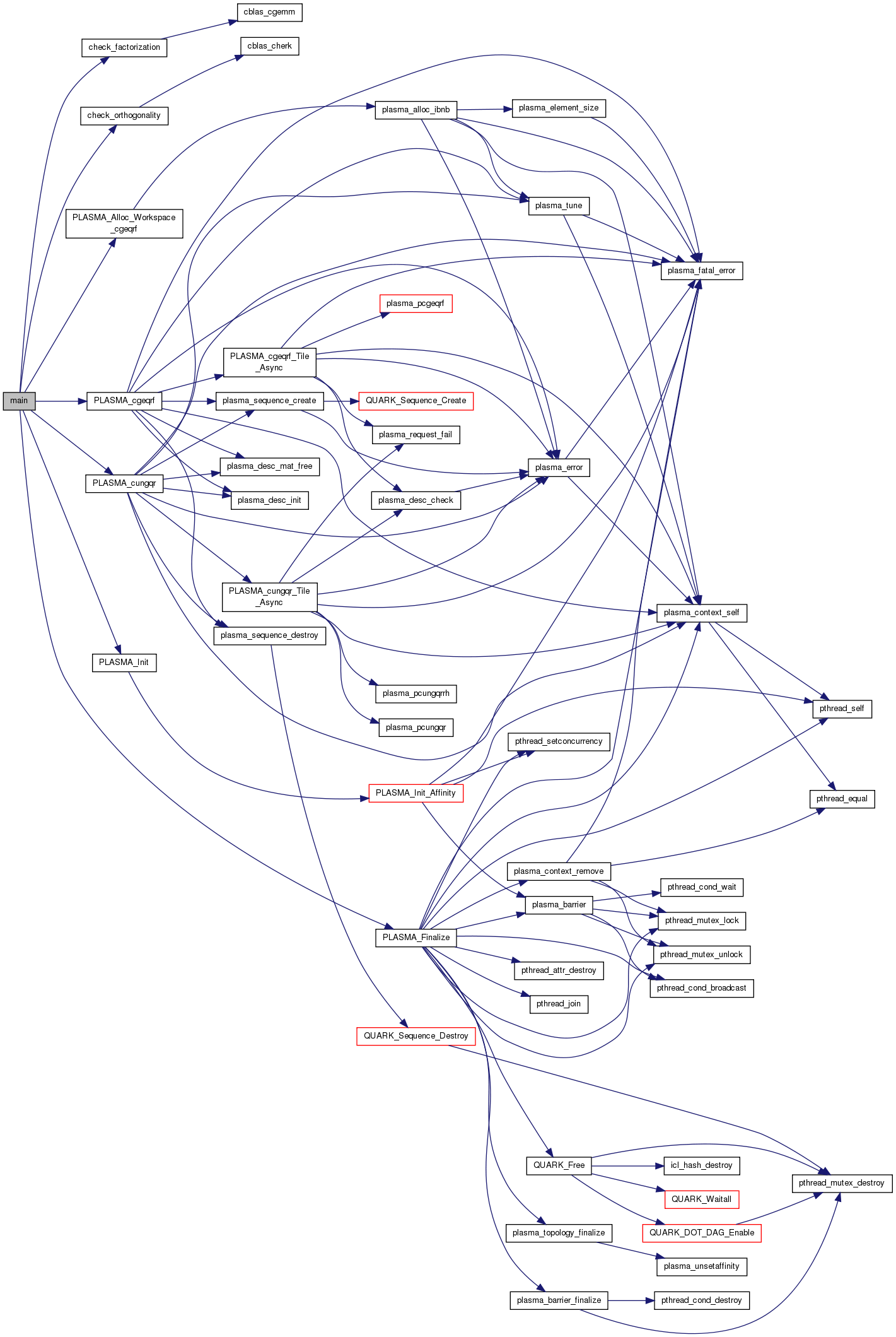 References check_factorization(), check_orthogonality(), IONE, ISEED, min, PLASMA_Alloc_Workspace_cgeqrf(), PLASMA_cgeqrf(), PLASMA_cungqr(), PLASMA_Finalize(), PLASMA_Init(), Q, and T.