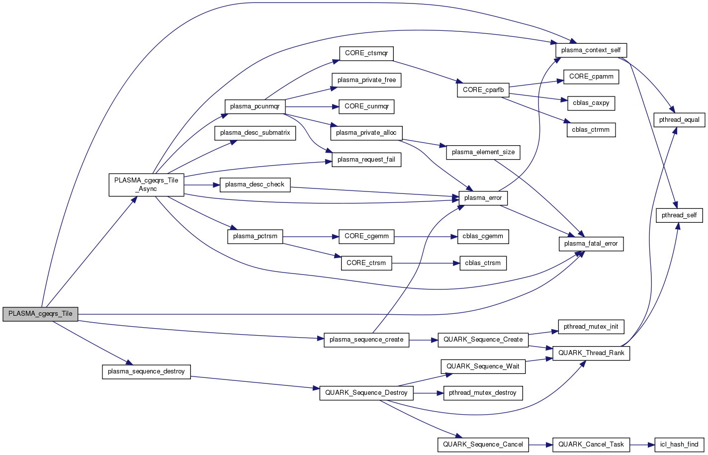 PLASMA_cgeqrf_Tile - Computes the tile QR factorization of a matrix. Tile equivalent of PLASMA_cgeqrf(). Operates on matrices stored by tiles. All matrices are passed through descriptors. All dimensions are taken from the descriptors.