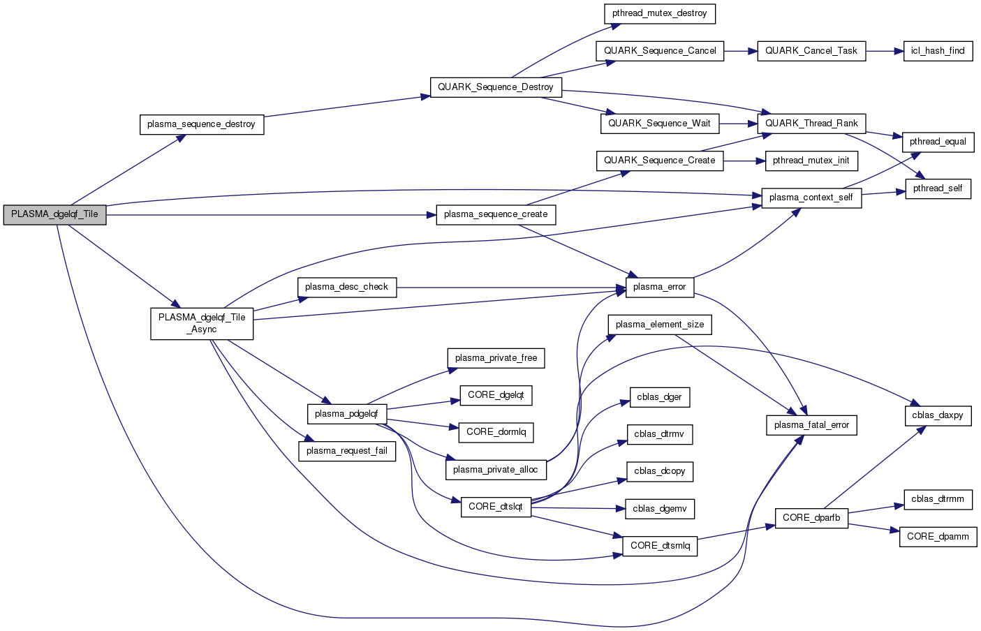 PLASMA_dgelqf_Tile - Computes the tile LQ factorization of a matrix. Tile equivalent of PLASMA_dgelqf(). Operates on matrices stored by tiles. All matrices are passed through descriptors. All dimensions are taken from the descriptors.