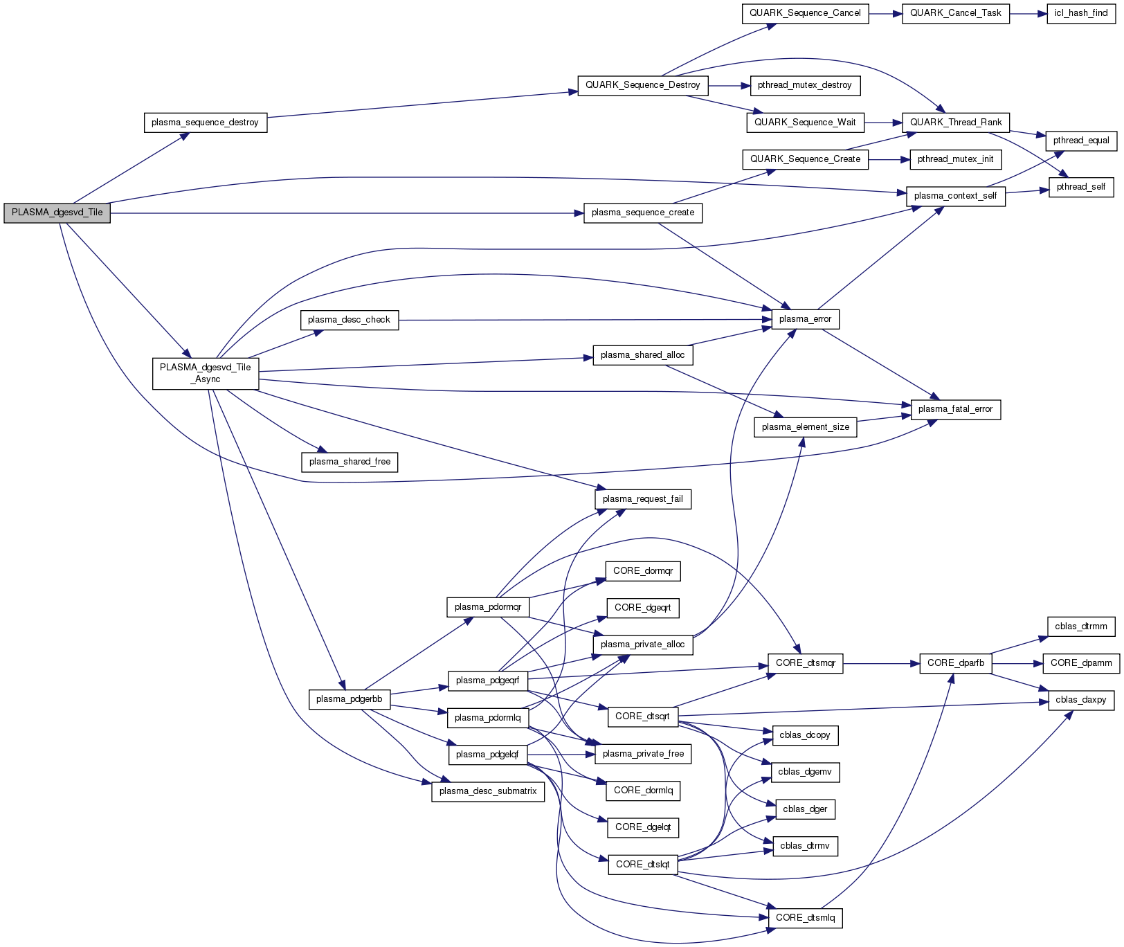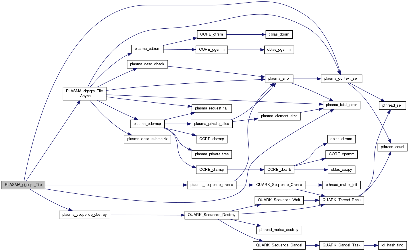 PLASMA_dgeqrf_Tile - Computes the tile QR factorization of a matrix. Tile equivalent of PLASMA_dgeqrf(). Operates on matrices stored by tiles. All matrices are passed through descriptors. All dimensions are taken from the descriptors.