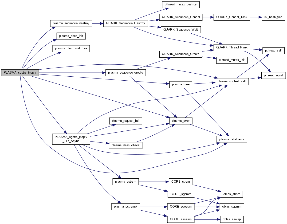 | int | PLASMA_sgetrs_incpiv (PLASMA_enum trans, int N, int NRHS, float *A, int LDA, float *L, int *IPIV, float *B, int LDB) |